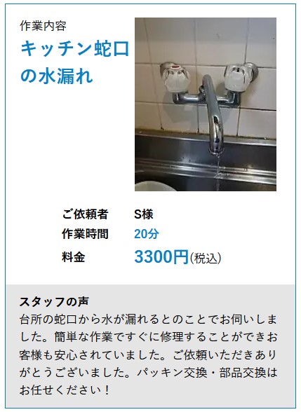豊田市で対応可能なキッチン(台所)の修理サービスとなります。その他のトラブルはお気軽に受付スタッフまでご相談ください。